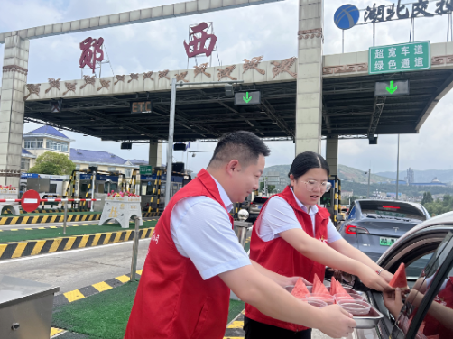 近日,天氣持續(xù)高溫給人們的出行和工作帶來了嚴(yán)峻的“烤驗”。為給在酷暑中奔波的司乘朋友、堅守崗位的一線人員送去一份關(guān)愛和“清涼”,湖北交投鄂西北運營公司鄖西收費站迅速行動,開展了“酷暑送清涼 沁甜暖人心 ”志愿服務(wù)活動。