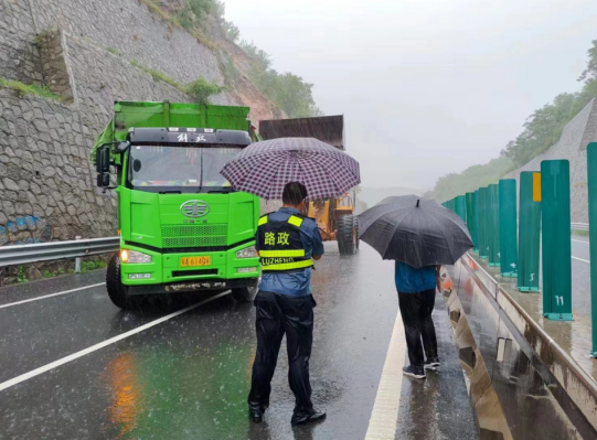 石家莊支隊鹿泉大隊及時對青銀高速石太段石家莊方向K678處因強降雨發(fā)生的山體滑坡開展搶險工作。通過各方努力,塌方現(xiàn)場在兩小時內(nèi)清理完畢。各支、大隊充分發(fā)揮黨員模范帶頭作用,沖鋒在前,守好陣地,堅決捍衛(wèi)人民生命財產(chǎn)安全。