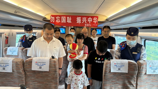 2023年9月18日,由中國(guó)鐵路鄭州局集團(tuán)有限公司鄭州客運(yùn)段高鐵一隊(duì)京杭四組擔(dān)當(dāng)?shù)腉1967次列車上,列車長(zhǎng)和乘務(wù)員給旅客回顧和講解了“918”這個(gè)特殊的紀(jì)念日,列車長(zhǎng)李靜文更是在警醒自己的同時(shí)告訴旅客不忘歷史烽煙起心中長(zhǎng)鳴警鐘聲。