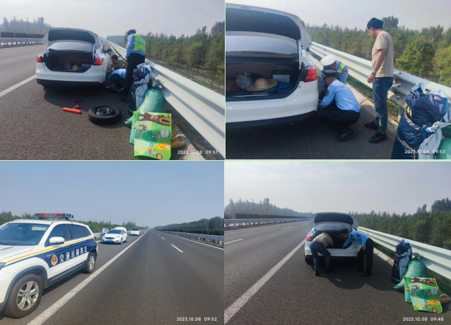 2023年10月8日上午9:45分左右,濰坊市交通運(yùn)輸綜合執(zhí)法支隊(duì)青蘭大隊(duì)執(zhí)法人員,在濰日高速公路開展巡查工作時(shí)發(fā)現(xiàn)日照方向126K+900處,有一輛日照牌照小轎車?吭谂R近應(yīng)急車道旁,車輛右后輪胎已爆,車主急得手足無措、十分焦急。