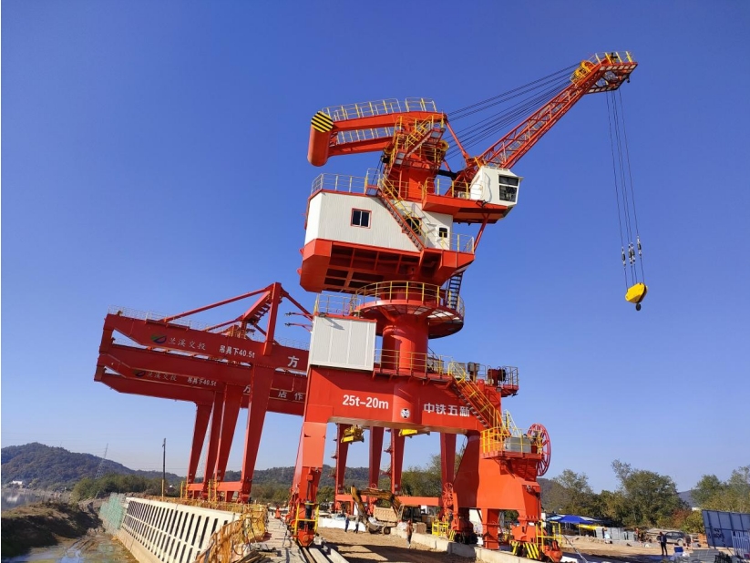筆者昨天在金華港蘭溪港區(qū)方下店作業(yè)區(qū)(一期)施工現(xiàn)場看到,兩座紅色巨型門式集裝箱起重機和高聳的門座式起重機已經安裝在1-4號泊位的碼頭上,整個作業(yè)區(qū)到處是閃閃的焊花和川流不息的施工車輛,呈現(xiàn)出一派緊張忙碌的施工景象。