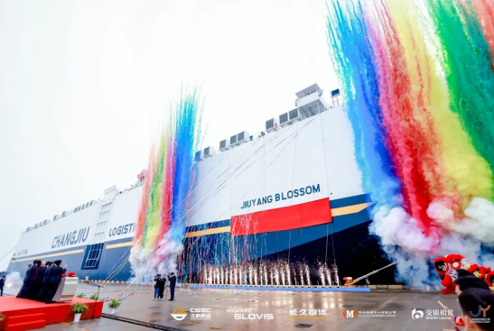 “久洋興”輪命名暨首航儀式現(xiàn)場出席本次命名暨首航儀式的主要領(lǐng)導(dǎo)和嘉賓包括:交通運輸部原副部長徐祖遠(yuǎn),中國第一汽車集團(tuán)公司原黨委書記趙方寬,長春市政府黨組成員、長春市汽車行業(yè)協(xié)會黨建聯(lián)盟書記王海英,中國航海學(xué)會常務(wù)副理事長張寶晨,中國船東協(xié)會常務(wù)副會長張守國,韓國現(xiàn)代格羅唯視全球總部總裁李圭馥,中國物流與采購聯(lián)合會會長何黎明,中國交通銀行首席專家、交銀金融租賃有限公司董事長徐斌,上海臨港集團(tuán)副總裁顧春華。