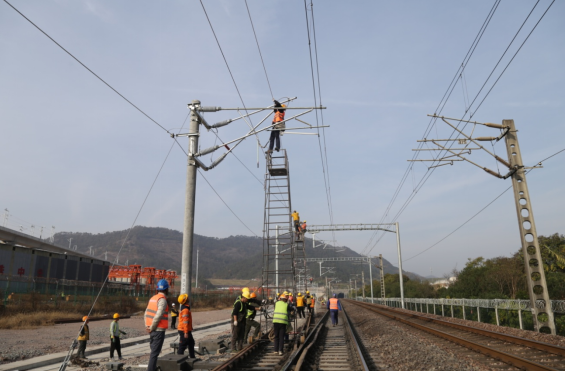 12月5日,中國中鐵電氣化局運(yùn)管公司上海維管處杭州維管段(以下簡稱杭州維管段)維管的全國首條雙層高集裝箱電氣化鐵路甬金鐵路引入滬昆線接火送電,為后續(xù)全線送電開通運(yùn)營提供供電保障。
