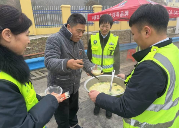 “師傅,醒醒,吃碗面吧!”“來(lái),師傅我給您加點(diǎn)熱水……”,12月31日早上9時(shí)左右,部分收費(fèi)站解除管制,處于高海拔的G70福銀高速十土路段土關(guān)埡收費(fèi)站,大霧仍然沒(méi)有消散,部分滯留在入口匝道的貨車(chē)司機(jī)稍顯焦躁。該站值班領(lǐng)導(dǎo)安排食堂下了臊子面,“小水滴”們化身為站口志愿者,為等待一夜的司乘遞上暖心面條,一碗碗熱騰騰的“暖心面”陸續(xù)送到司乘手中,等待了一夜的司乘們愁容漸散,紛紛露出了滿(mǎn)意的笑容,邊拿出手機(jī)拍照發(fā)抖音發(fā)朋友圈邊感嘆到“交投人服務(wù)暖心,湖北交投666!”中午11時(shí),大霧散去,土關(guān)埡站口解封,“小水滴”志愿者們化身交通引導(dǎo)員,經(jīng)過(guò)一個(gè)多小時(shí)的合力奮戰(zhàn),站口恢復(fù)正常通行秩序。