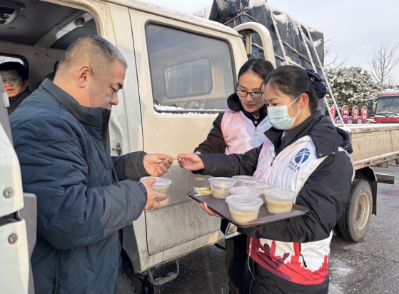 以“情”暖心,真心服務(wù)暖寒冬。降雪后部分車輛因交通管控滯留在收費(fèi)站口,隆中收費(fèi)站志愿服務(wù)隊(duì)及時(shí)出動(dòng),為司乘提供熱水、免費(fèi)早餐、手機(jī)充電等志愿服務(wù),讓過(guò)往司乘感受到冬日的溫暖。并密切關(guān)注路況信息為司乘合理規(guī)劃行車路線,提醒司乘雪天路滑謹(jǐn)慎駕駛,做好延伸服務(wù)。