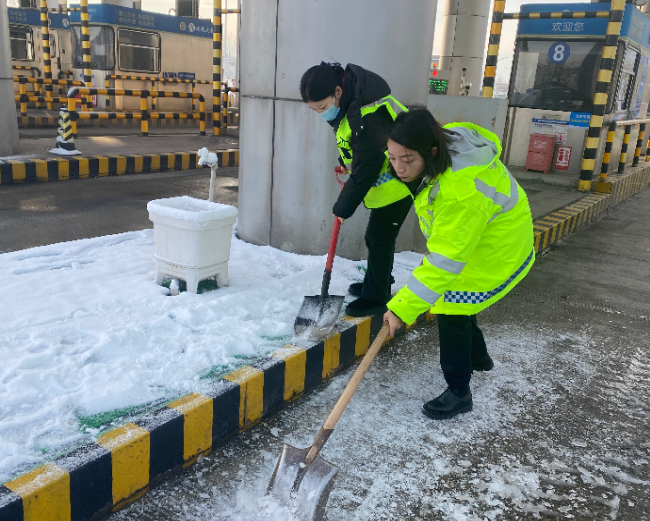 為防止降溫和降雪后,收費(fèi)廣場(chǎng)和車道出現(xiàn)積雪結(jié)冰現(xiàn)象,管理所第一時(shí)間積極組織全體干部職工成立除雪保暢突擊隊(duì),通過人工布撒融雪劑、鏟雪除冰、疏通道路,確保車輛通行正常,同時(shí)實(shí)行領(lǐng)導(dǎo)24小時(shí)帶班巡查制度,不斷加強(qiáng)對(duì)收費(fèi)現(xiàn)場(chǎng)、供配電設(shè)備和機(jī)電設(shè)施等重點(diǎn)場(chǎng)所和設(shè)備的安全隱患排查頻次,確保惡劣天氣下各項(xiàng)設(shè)施設(shè)備正常運(yùn)行;依托集中監(jiān)控點(diǎn)遠(yuǎn)程視頻管控的優(yōu)勢(shì),采取“人防+機(jī)防”的方式,不斷加強(qiáng)對(duì)收費(fèi)站口道路巡查力度和頻次,重點(diǎn)對(duì)主線道路、橋梁和濕滑等路段的巡查監(jiān)控,同時(shí)密切關(guān)注天氣變化,通過路面情報(bào)板、門架情報(bào)板、站所情報(bào)板等平臺(tái)發(fā)布最新信息,第一時(shí)間將天氣情況告知廣大司乘人員,引導(dǎo)司乘正確出行;依托“一路六方”機(jī)制成立志愿服務(wù)隊(duì),強(qiáng)化與地方交警、公安、醫(yī)療、政府等各部門聯(lián)勤聯(lián)動(dòng),對(duì)因雪情滯留的車輛、行人進(jìn)行疏通引導(dǎo)和解釋安撫的工作,并提供防寒取暖物資及方便應(yīng)急食品,確保廣大司乘人員“走得好、走得了、走得安全”。