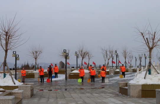 2月25日,佳縣環(huán)衛(wèi)所組織60余名環(huán)衛(wèi)工人連續(xù)作戰(zhàn),清掃東方紅文化產(chǎn)業(yè)園廣場(chǎng)殘余積雪。佳州街道凌云路社區(qū)秧歌隊(duì)走進(jìn)清掃現(xiàn)場(chǎng)演出,致敬最可愛(ài)的人。