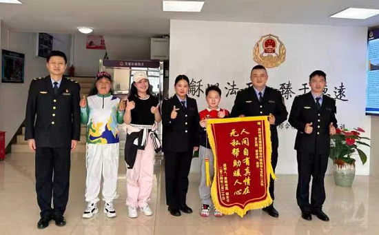 “我的車輛爆胎無(wú)法行駛,車上都是老人和小孩,手足無(wú)措。因?yàn)槟銈兊膸椭,我們這一家人才能夠安全返鄉(xiāng),我要為你們點(diǎn)贊!”2月20日下午,來(lái)自貴陽(yáng)的駕駛員楊女士將印有“人間自有真情在、無(wú)私幫助暖人心”的錦旗送到了執(zhí)法人員的手里。