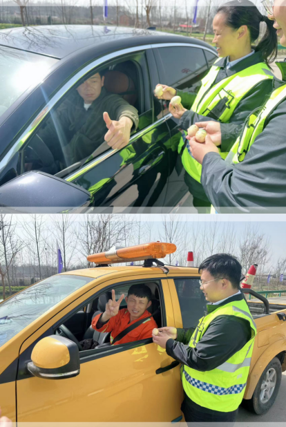 “司機大哥,您一路辛苦了,今天春分時節(jié),祝您好運滿滿、幸福滿滿!”服務(wù)團隊的志愿者們?yōu)檫^往司乘送上春分禮物及祝福。在一個個雞蛋、一份份祝福送出后,“青年志愿行 伴您過春分”活動也在“大拇指”和“大V”中圓滿拉下帷幕。