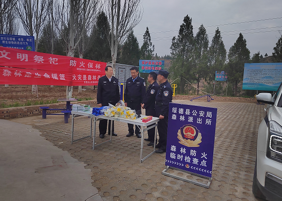 針對清明節(jié)前后上墳祭祀集中,部分群眾防火意識薄弱,易引發(fā)山火的情況。綏德縣公安局森林派出所通過懸掛橫幅,張貼《通告》,發(fā)放宣傳材料、宣傳品,鮮花等方式,向群眾宣傳文明、綠色祭祀新方式。同時加強林區(qū)巡邏管控,并在林區(qū)主要路口設(shè)卡檢查,排除各類易燃安全隱患。