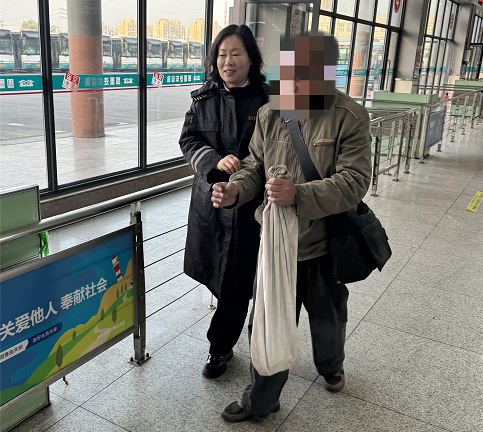 房茜將大叔攙扶至座位上,并給他系好安全帶,囑咐司機(jī)師傅路上多加照看,下車進(jìn)行攙扶。大叔對房茜的熱心幫助連聲稱謝。