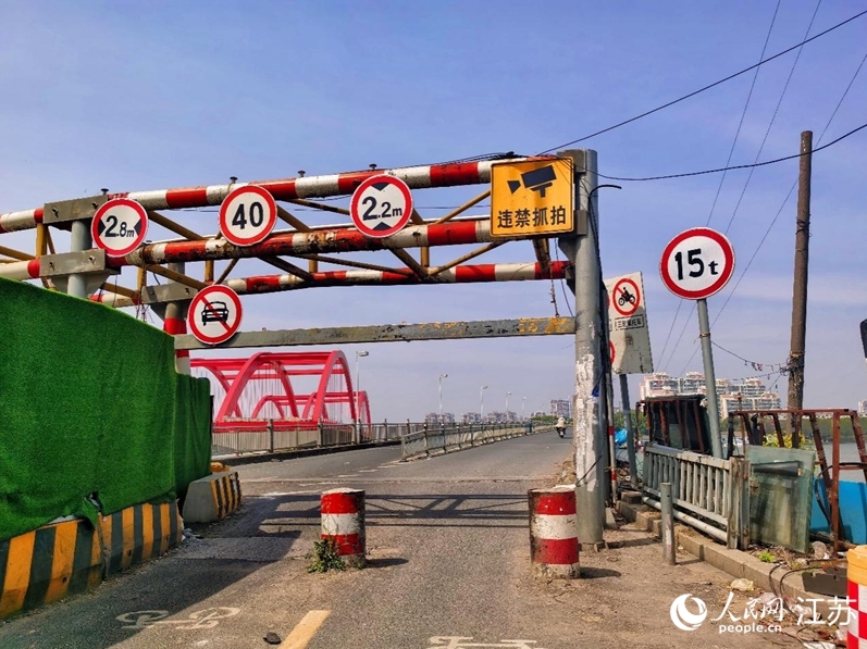 老勝浦大橋吳中段安裝了梅花樁和限高桿。人民網(wǎng)記者王繼亮攝