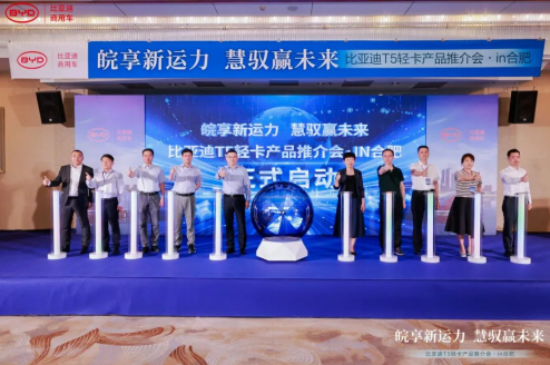 皖享新運(yùn)力,慧馭贏未來。5月29日,比亞迪輕卡T5系列產(chǎn)品推介會(huì)合肥站正式啟動(dòng)。本次活動(dòng),安徽省及合肥市等相關(guān)部門領(lǐng)導(dǎo)、比亞迪及商用車相關(guān)領(lǐng)導(dǎo)、交通及物流行業(yè)負(fù)責(zé)人齊聚,品鑒比亞迪輕卡T5產(chǎn)品,圍繞物流車新能源化、賦能綠色運(yùn)輸、新能源車推廣等展開探討,致力共推當(dāng)?shù)鼐G色物流發(fā)展,共建綠色貨運(yùn)配送新藍(lán)圖。