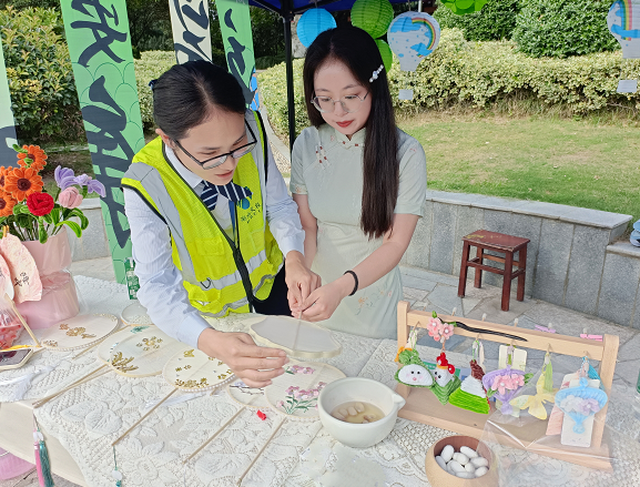 同時(shí),志愿者們還教授了漆扇和書簽的制作技藝。以漆為筆,以水為墨,在刻有“隆中”字跡的扇面上,親手制作了屬于自己獨(dú)一無二的端午漆扇,感受到了流云變換的中式美學(xué)和中國傳統(tǒng)工藝的獨(dú)特魅力。