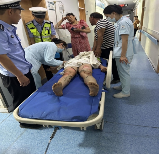 警報(bào)鳴響,警燈閃爍,爭(zhēng)分奪秒,搶救生命,過(guò)往車(chē)輛駕駛?cè)艘仓鲃?dòng)避讓。一路上執(zhí)勤交警爭(zhēng)分奪秒,50多公里的路程僅用了35鐘就到達(dá)了解放軍第951醫(yī)院。到達(dá)醫(yī)院后,執(zhí)勤交警還幫助家長(zhǎng)快速將男孩送進(jìn)燒傷科,經(jīng)過(guò)檢查男孩燒傷面積達(dá)30%,姐姐燒傷面積達(dá)8%,得知兩人正在治療,執(zhí)勤交警才松了口氣,重返執(zhí)勤崗位。