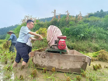 “今年谷子長得好,你們上半年的的努力有成果啦!”,農(nóng)戶陳代池笑著對志愿者說道。這是繼五月栽種秧苗以后,志愿者再次前來開展志愿服務(wù)。一到田間,在農(nóng)戶的指導(dǎo)下,志愿者挽起衣袖、卷起褲腳、手持鐮刀開始割稻。同時,田頭打谷機轟鳴,割稻、脫粒同步進行。在大家通力合作下,一上午時間,幾片田的稻谷就收割完畢,一粒粒稻谷也被“收入囊中”,堆起來近一人高的稻桿顯示收獲頗豐。