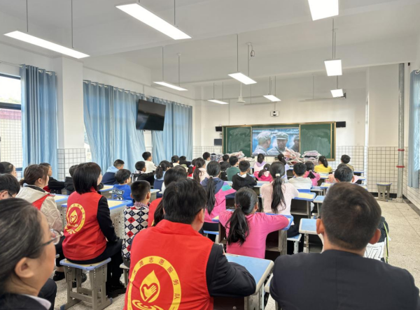 功勛模范為榜樣,凝聚奮進共識;顒又校驹刚吲c同學們共同觀看電視劇《功勛》精彩片段,感受艱苦年代砥礪奮進的征程,激勵孩子們以功勛模范人物為榜樣,傳承英雄們無私奉獻的偉大精神,不斷厚植愛國情操。最后,志愿者們?yōu)樵趫龅?0余名困難學生送上了愛心書包以、文具、繪本等學習用品,并鼓勵孩子們努力學習,以陽光的心態(tài)積極面對生活中的挑戰(zhàn),勇敢地追逐自己的夢想。