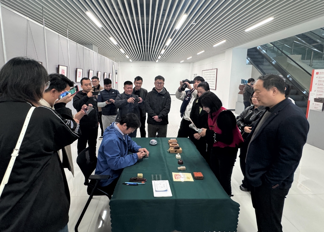 與企業(yè)開放日一同舉辦的“傳承中華文明·弘揚(yáng)黨的精神”甲骨文篆刻展,聚焦了安陽市民的高度關(guān)注。安陽是中國(guó)八大古都之一,是甲骨文的故鄉(xiāng),周易文化的發(fā)源地,紅旗渠精神的發(fā)祥地,被譽(yù)為“中華字都”。此次篆刻展展出作品125件,由中國(guó)書協(xié)會(huì)員黃連萍、程建強(qiáng),上海書協(xié)會(huì)員孫守田、魏玉麟四位篆刻家創(chuàng)作,以紀(jì)念甲骨文發(fā)現(xiàn)125周年;顒(dòng)過程中,參展作者上海寶冶書畫協(xié)會(huì)會(huì)長(zhǎng)程建強(qiáng)現(xiàn)場(chǎng)展示甲骨文篆刻技巧,分享甲骨文及篆刻藝術(shù)的研究心得,深受觀展群眾的喜愛,詮釋了寶冶人的匠心精神和品質(zhì)堅(jiān)守。參展期間,程建強(qiáng)還接收了媒體采訪。