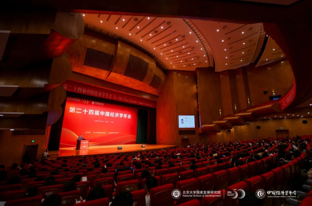 2024年11月30日,第二十四屆中國(guó)經(jīng)濟(jì)學(xué)年會(huì)在北京大學(xué)百周年紀(jì)念講堂開幕。共有37家年會(huì)理事單位的代表成員,43位國(guó)內(nèi)一流高校經(jīng)濟(jì)學(xué)院系負(fù)責(zé)人,137篇入選論文作者,17家知名出版單位與一流學(xué)術(shù)期刊的相關(guān)負(fù)責(zé)人,5家招聘單位的代表成員,以及來自全國(guó)各地的學(xué)者、學(xué)生、記者、經(jīng)濟(jì)學(xué)愛好者等近千人齊聚北京大學(xué),同時(shí)還有數(shù)十個(gè)直播平臺(tái)參與,數(shù)十萬人在線收看直播。