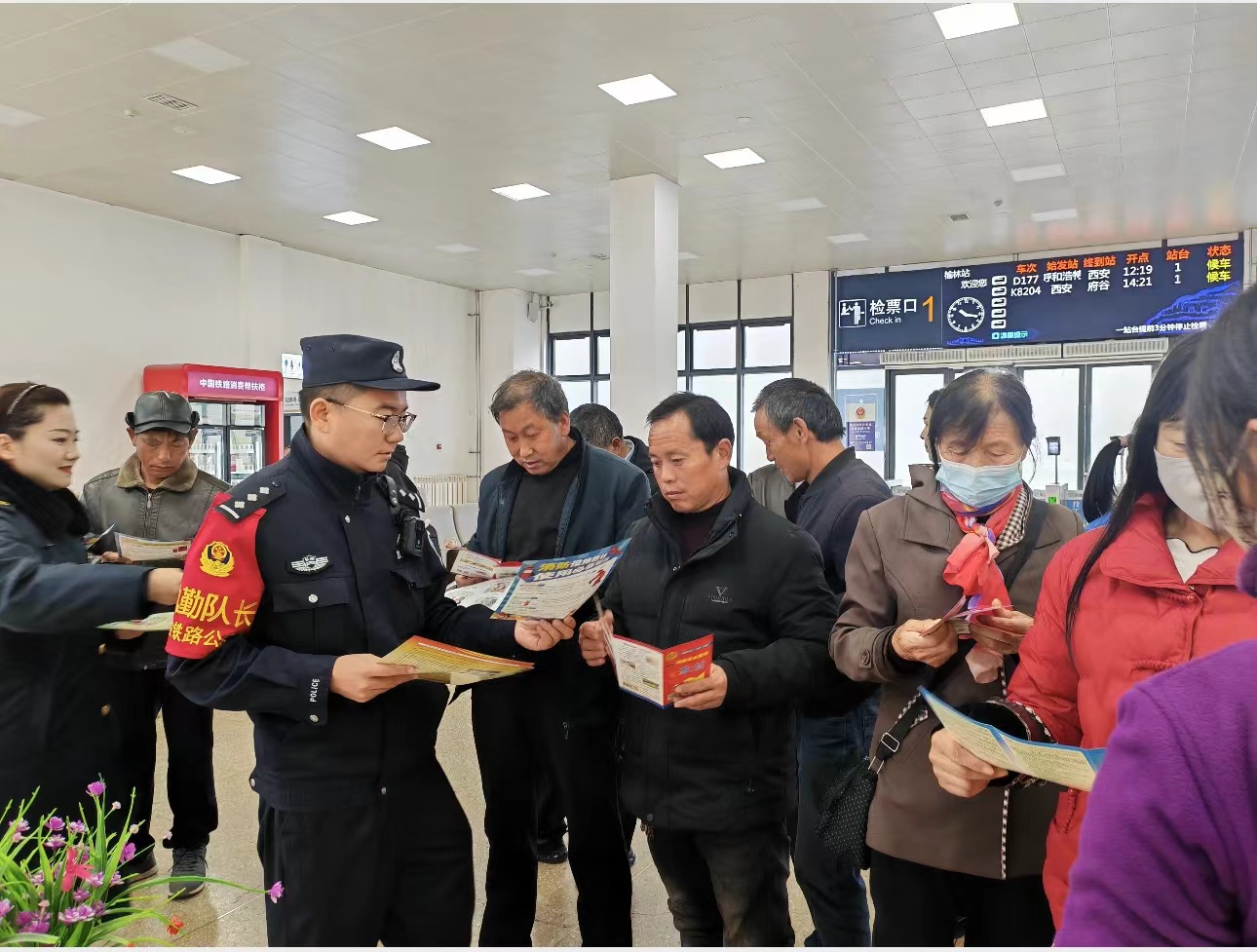 隨后,榆林所組織警力開展春運愛民實踐活動,在候車室設置“便民服務臺”、“法律咨詢”等區(qū)域,為旅客宣傳反電信詐騙知識、出行安全常識、發(fā)放宣傳單等。