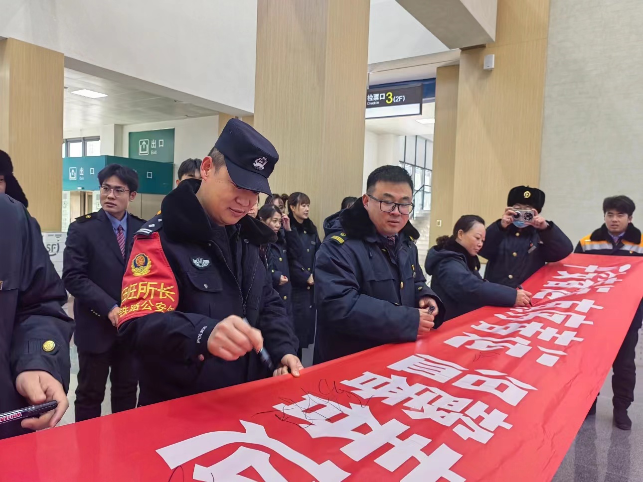 活動中黨員民警代表作了表態(tài)發(fā)言,面對2025年春運大考,全體民警、輔警將以“春運有我,有我必勝”的頑強意志,積極作為、忠誠履責,對廣大旅客群眾生命財產(chǎn)高度負責,為旅客群眾排憂解難,為列車和車站保駕護航,以實際行動詮釋延安鐵警的責任和擔當,以實際作為擦亮塞上鐵警警務廣場品牌。