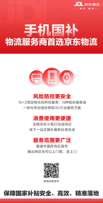 1月15日,據(jù)新華社報道,商務(wù)部等部門印發(fā)的《手機、平板、智能手表(手環(huán))購新補貼實施方案》發(fā)布,方案明確了補貼品種和補貼標(biāo)準(zhǔn)。為全力保障政策的安全、高效、精準(zhǔn)落地,京東物流的3C、家電行業(yè)“國補”以舊換新物流服務(wù)方案,通過10+2的創(chuàng)新及特色快遞服務(wù)和N種自由組合方式滿足各類個性化需求,同時憑借京東物流覆蓋中國所有區(qū)縣市的服務(wù)范圍和上門取、送上門的優(yōu)質(zhì)快遞服務(wù),以及多年來全國一線快遞員積累的一站式手機服務(wù)經(jīng)驗,全力保障國補風(fēng)險防控更安全、消費使用更便捷、服務(wù)范圍更廣泛。