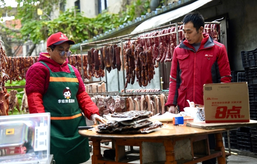 在四川眉山市仁壽縣汪洋鎮(zhèn),京東物流今年新開設(shè)的“鄉(xiāng)村服務(wù)站”也正忙碌地迎接春節(jié)到來。已經(jīng)成為當?shù)卮迕?ldquo;老朋友”的楊曉林是該服務(wù)站唯一的快遞小哥,負責(zé)鎮(zhèn)上快遞的攬收、派送工作。春節(jié)臨近,汪洋鎮(zhèn)當?shù)氐哪曦浂Y品寄遞量翻了近一倍,春節(jié)期間他的快遞服務(wù)站每天都會開門營業(yè),滿足鄰近村鎮(zhèn)居民的寄遞需求。楊曉林表示,“身邊有不少同事選擇春節(jié)在崗,公司有這么多福利,大家挺滿意的。”(張揚)