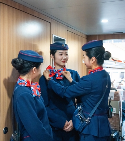 第一次成為高鐵乘務(wù)員,第一次參與春運(yùn),其中的不適應(yīng)與艱難不言而喻。初次服務(wù)商務(wù)座旅客時(shí),因?qū)ω浧窋[放、服務(wù)流程的生疏,她犯下不少不專業(yè)的錯(cuò)誤,那些時(shí)刻,焦慮與自我懷疑如影隨形。但幸運(yùn)的是,在車長和師父的耐心教導(dǎo)和熱心幫助下,她從最初只會(huì)說“不好意思,請稍等一下”,到如今能專業(yè)、從容地應(yīng)對(duì)旅客的各種需求,收獲他們的認(rèn)可。這一路走來,她深知自己在高鐵乘務(wù)這條道路上,還有很長的路要走,但也更加堅(jiān)定了信念:沒有天生的適合,只要用心付出,所有努力終會(huì)開花結(jié)果。
