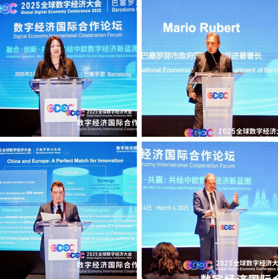 3月4日,2025全球數(shù)字經(jīng)濟(jì)大會(huì)(GDEC)海外分會(huì)場(chǎng)在西班牙巴塞羅那舉辦。本次大會(huì)由全球數(shù)字經(jīng)濟(jì)大會(huì)組委會(huì)主辦,北京市經(jīng)濟(jì)和信息化局承辦,吸引來(lái)自中國(guó)、西班牙及歐洲其他國(guó)家的150余位政府代表、企業(yè)高管、行業(yè)協(xié)會(huì)領(lǐng)袖等重磅嘉賓參會(huì),60余家海外企業(yè)和機(jī)構(gòu)參加。期間開(kāi)展了20余場(chǎng)政企對(duì)接活動(dòng),各方圍繞數(shù)字經(jīng)濟(jì)前沿議題深入交流,達(dá)成多項(xiàng)合作意向。