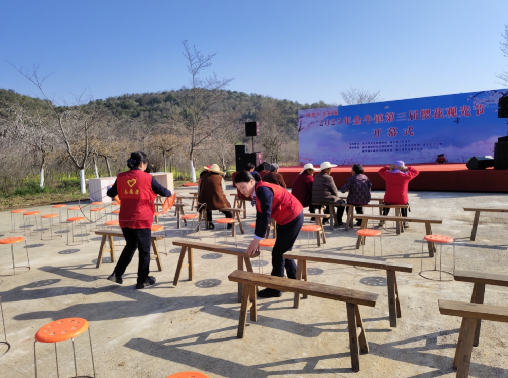 陽(yáng)春三月,櫻花盛開,3月20日,大冶市文化旅游局、金牛鎮(zhèn)政府在小堰村組織開展了第三屆櫻花觀光節(jié)活動(dòng),武黃運(yùn)營(yíng)公司鄂咸“愛路-AiLu”志愿服務(wù)隊(duì)積極為金牛鎮(zhèn)櫻花節(jié)增添了湖北交投青年的熱情和溫暖。