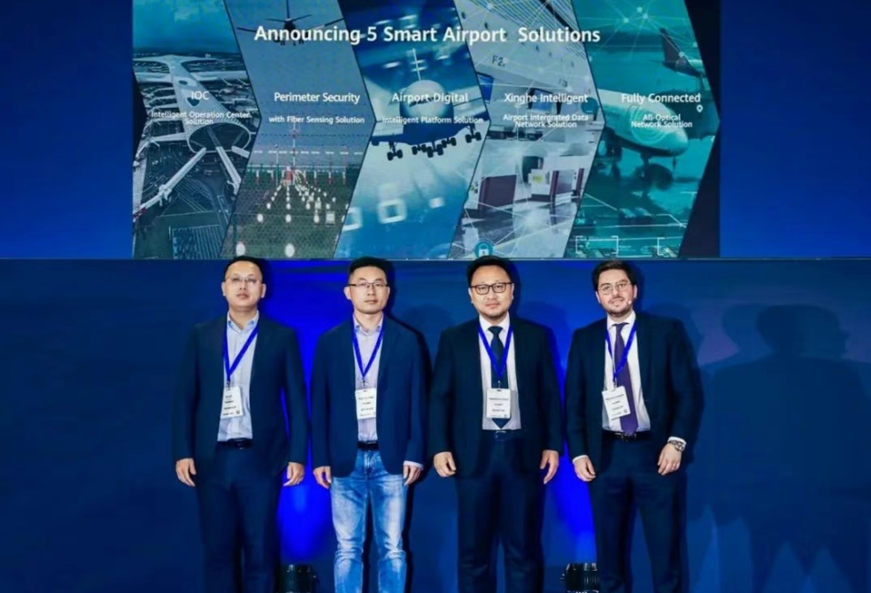 西班牙,馬德里,2025年4月8日,2025國際候機樓設備展覽會(Passenger Terminal Expo)期間,華為發(fā)布機場智能運控中心等五大航空解決方案,引領行業(yè)智能化升級。華為交通智慧化軍團副總裁董方朔、華為數(shù)據(jù)通信交通行業(yè)解決方案總監(jiān)楊國杰、華為政企光領域總工程師劉喜、華為交通智慧化軍團全球業(yè)務與戰(zhàn)略合作伙伴總監(jiān)Rachad Nassar參與發(fā)布儀式。