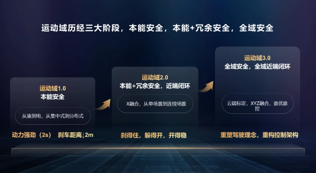關(guān)于這點,華為數(shù)字能源智能電動產(chǎn)品線總裁王超在發(fā)布會總結(jié)到:“運動域的發(fā)展歷程可分為三個階段,分別是本能安全、本能+冗余安全和全域安全。其中1.0階段,會面臨從液壓控制到全面電動化,從集中式演進到分布式控制階段;進入到2.0階段,部件之間的冗余備份會顯著提高汽車的行駛安全,近端閉環(huán)也會降低部件響應(yīng)時間,汽車操控更絲滑。未來,面向3.0階段,將實現(xiàn)全域安全、全域近端閉環(huán),通過XYZ深度融合顛覆傳統(tǒng)駕駛思維。”