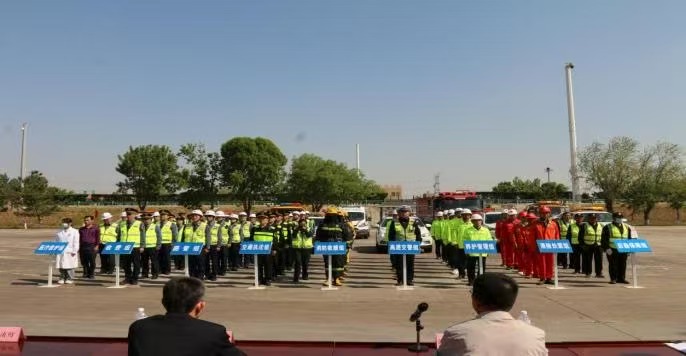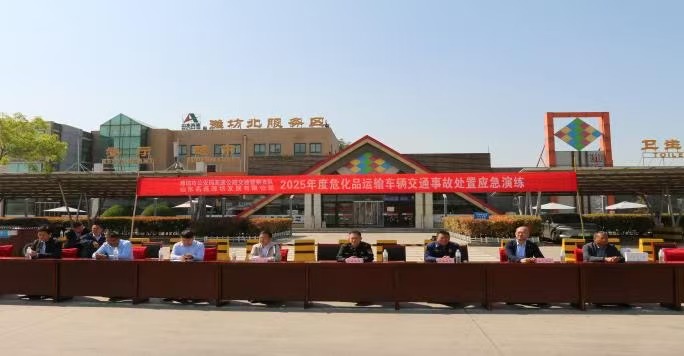 隨著五一假期臨近,高速公路車流量將迎來(lái)大幅增長(zhǎng),為有效應(yīng)對(duì)可能發(fā)生的危險(xiǎn)化學(xué)品運(yùn)輸事故,提升交通執(zhí)法部門與各相關(guān)單位的協(xié)同應(yīng)急處置能力,切實(shí)保障人民群眾生命財(cái)產(chǎn)安全和道路交通安全暢通,4月28日,山東高速濰坊發(fā)展公司聯(lián)合濰坊市交通運(yùn)輸綜合執(zhí)法支隊(duì)、濰坊市公安局高速公路交通警察支隊(duì)、濰坊市消防救援大隊(duì)、濰坊服務(wù)區(qū)、濰坊衛(wèi)健、濰坊環(huán)保及濰坊市應(yīng)急救援指揮中心等多部門在榮烏高速濰坊北服務(wù)區(qū)開展了;愤\(yùn)輸車輛交通事故處置應(yīng)急演練。