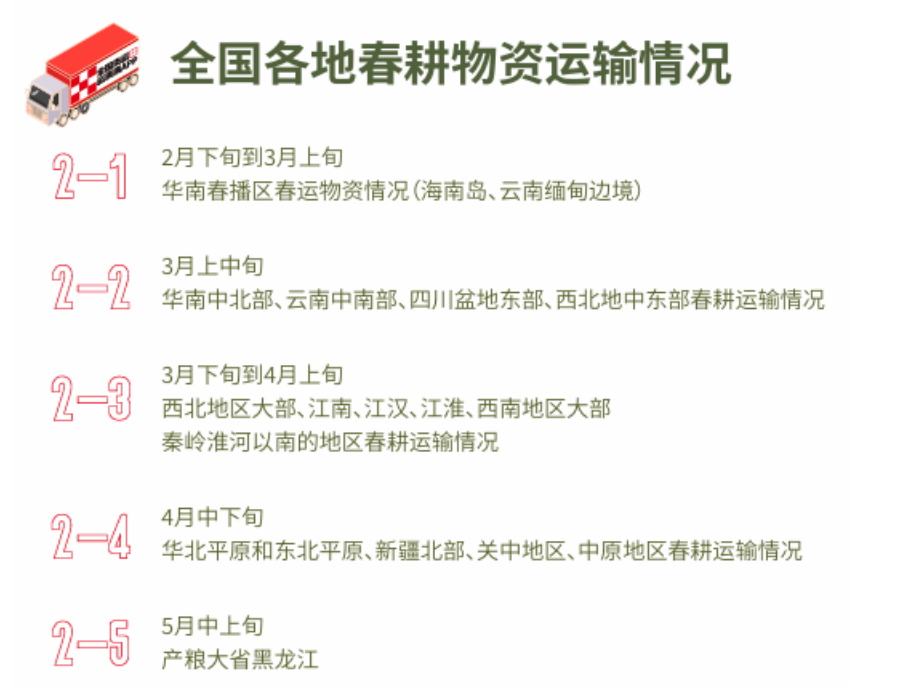 近日,數(shù)字貨運(yùn)平臺(tái)運(yùn)滿滿發(fā)布《2025年春耕生產(chǎn)物資公路運(yùn)輸數(shù)字化報(bào)告》(以下簡稱《報(bào)告》)。報(bào)告基于春耕時(shí)間線(2月中下旬至5月中上旬),自南向北梳理了各省春耕物資運(yùn)輸動(dòng)態(tài),直觀呈現(xiàn)了春耕生產(chǎn)物資背后相關(guān)產(chǎn)業(yè)的發(fā)展情況。