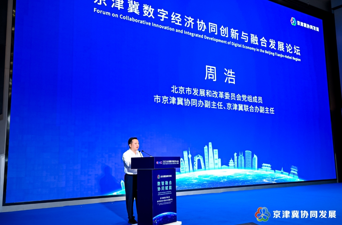 北京市發(fā)展改革委黨組成員、市京津冀協(xié)同辦副主任、京津冀聯(lián)合辦副主任周浩在致辭中表示,近年來(lái),三地緊抓數(shù)字經(jīng)濟(jì)戰(zhàn)略機(jī)遇,充分發(fā)揮各自資源優(yōu)勢(shì),共建“算力一張網(wǎng)”,上線國(guó)內(nèi)首個(gè)跨區(qū)域算力平臺(tái),扎實(shí)推動(dòng)數(shù)字經(jīng)濟(jì)和實(shí)體經(jīng)濟(jì)深度融合,京津冀新一代信息技術(shù)、海淀人工智能兩個(gè)集群成功晉級(jí)“國(guó)家隊(duì)”。下一步,三地要將數(shù)字技術(shù)發(fā)展作為核心驅(qū)動(dòng)力,夯實(shí)數(shù)字基礎(chǔ)設(shè)施底座,加快建設(shè)京津冀蒙算力供給走廊。鞏固數(shù)字產(chǎn)業(yè)化發(fā)展優(yōu)勢(shì),完善人工智能產(chǎn)業(yè)生態(tài),加快推動(dòng)具身智能產(chǎn)業(yè)示范。推進(jìn)產(chǎn)業(yè)數(shù)字化轉(zhuǎn)型升級(jí),持續(xù)深化“六鏈五群”建設(shè),打造“智改數(shù)轉(zhuǎn)”標(biāo)桿項(xiàng)目。強(qiáng)化重點(diǎn)區(qū)域示范引領(lǐng),推動(dòng)通武廊、雄安新區(qū)、濱海新區(qū)等重點(diǎn)區(qū)域數(shù)字經(jīng)濟(jì)協(xié)同發(fā)展,加快建設(shè)京津冀數(shù)字經(jīng)濟(jì)協(xié)同創(chuàng)新共同體,引領(lǐng)高質(zhì)量發(fā)展邁上新臺(tái)階。
