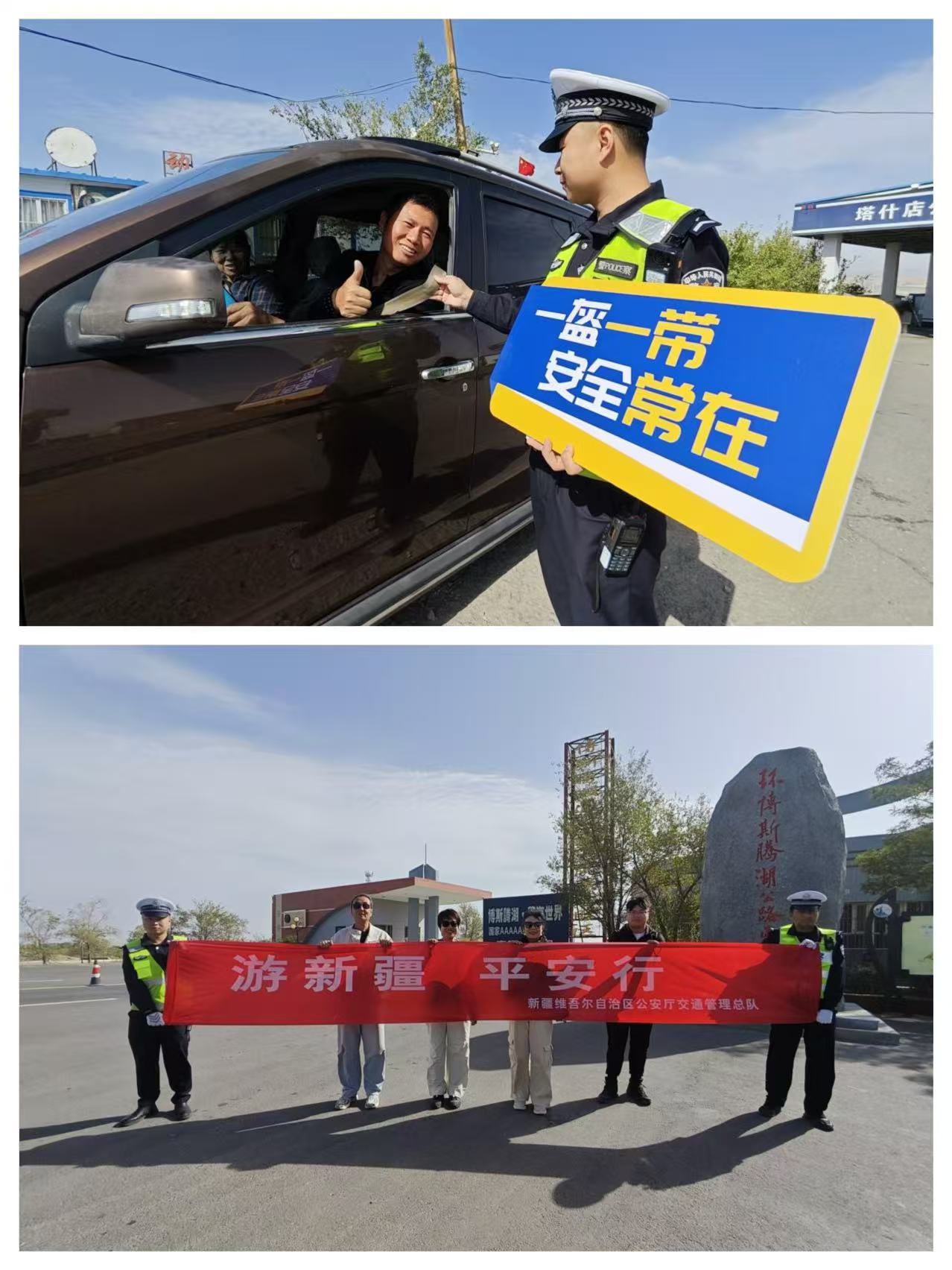 “國(guó)慶中秋出行,莫忘交通安全;道路千萬(wàn)條,安全第一條;一盔一帶暢行路,平安出行護(hù)身符;駕車(chē)滴酒不沾,一生平安相伴;握好方向盤(pán),合家大團(tuán)圓;駕乘車(chē)輛出游時(shí),一定要遵規(guī)守法,切勿超速行駛、強(qiáng)超強(qiáng)會(huì);長(zhǎng)途駕駛,一定要注意休息,切勿疲勞駕駛;一定要牢記“開(kāi)車(chē)不喝酒、喝酒不開(kāi)車(chē)”,切勿酒駕醉駕;駕乘車(chē)輛請(qǐng)全程系好安全帶;在國(guó)道山區(qū)道路上行駛時(shí)一定要注意‘降速、控距、亮尾’,確保一路安全駕駛……” “雙節(jié)”假期,巴州各個(gè)景區(qū)熱度持續(xù)升溫,八方賓客紛至沓來(lái),特別是自駕游前往博斯騰湖5A的車(chē)流量劇增,庫(kù)爾勒市公安局交通管理大隊(duì)塔什店中隊(duì)做精做優(yōu)以“宣傳有廣度、執(zhí)勤有力度、服務(wù)有溫度、快處有速度”的旅游警務(wù),中隊(duì)領(lǐng)導(dǎo)帶領(lǐng)執(zhí)勤民警輔警一路“警”隨、全力以“護(hù)”,在指導(dǎo)疏導(dǎo)交通、維護(hù)車(chē)輛秩序的同時(shí),還向廣大駕駛?cè)撕陀慰痛罅﹂_(kāi)展“游新疆、平安行”主題宣傳,將交通安全錦囊送給大家,不厭其煩地向廣大駕駛?cè)硕、囑咐、提醒、宣傳疲勞駕駛、超速行駛、分心駕駛、隨意變道、酒后駕駛、超員駕駛、不系安全帶等交通違法行為的嚴(yán)重危害,教育引導(dǎo)大家時(shí)刻繃緊交通安全這根弦,為“雙節(jié)”假期營(yíng)造平安、有序、暢通的道路交通環(huán)境。(嚴(yán)萬(wàn)海)