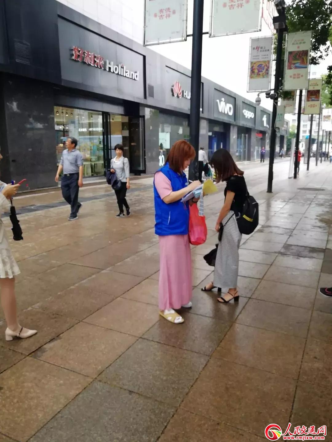 在華南師范大學(xué)門口,萬順叫車廣州分公司的兼職推廣員正在用英文向一位韋博英語外教介紹萬順叫車注冊、下單等操作流程。 4 風(fēng)雨兼程,再惡劣的環(huán)境也阻擋不了萬順合伙人前進(jìn)的決心和步伐。