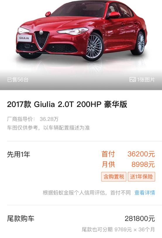 你如果還不知道阿爾法·羅密歐最近有多火就OUT啦! 3月21日,阿爾法·羅密歐天貓旗艦店首次上線350臺(tái)Giulia Milano,僅33秒便銷售一空。如果那時(shí)候你錯(cuò)過了,沒關(guān)系,彈個(gè)車更是以最低10%的超低首付,讓你先人一步,將這個(gè)霸氣的豪車品牌輕松收入囊中!