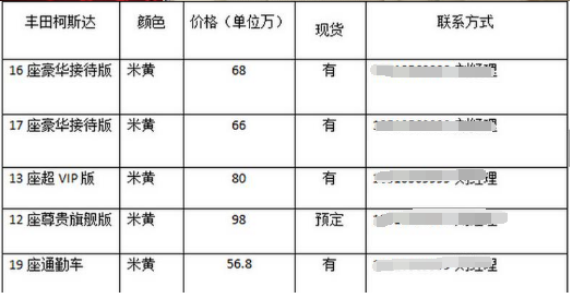主要銷售:豐田考斯特、豐田柯斯達、豐田海獅、商務銷售及優(yōu)質(zhì)加裝。本公司車型現(xiàn)車均有加裝過VIP版、個性定制商務版、專業(yè)服務、專業(yè)對車、銷售所有車輛均可全國上牌、享受原廠服務質(zhì)量保證、3年10公里全國質(zhì)保。歡迎您來電咨詢進店參觀指導