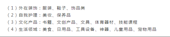 根據(jù)帶貨商品分布情況可以看出排名前5的分類分別為服裝、書籍、美妝、保養(yǎng)品、美食與日用品。