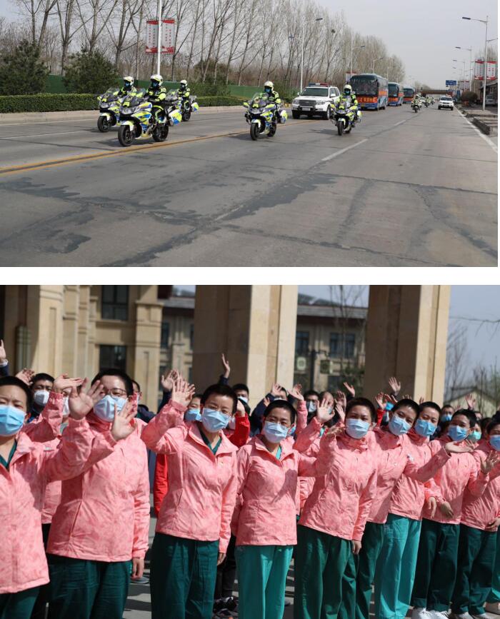 11時(shí)許,石家莊市支援湖北醫(yī)療隊(duì)隊(duì)員緩緩走下飛機(jī),為表達(dá)對英雄的敬意,交管局專門遴選了形象好素質(zhì)高的交警列隊(duì)歡迎,沿途群眾也自發(fā)組織迎接英雄回家,鮮花和掌聲送給最可愛的人。13時(shí)17分許,全體隊(duì)員安全抵達(dá)國山賓館,整個歡迎儀式隆重?zé)崃矣行,秩序井然?本刊記者 王彥生 通訊員 郭俊嶺 朱曉明 )