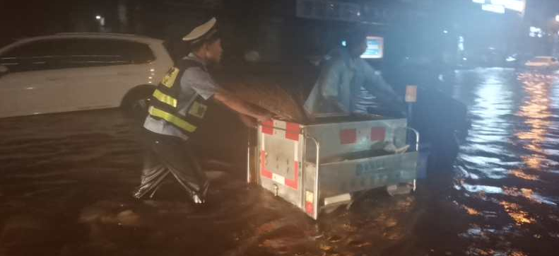 入汛以來,河北省雄縣持續(xù)降雨,降雨給車輛與行人帶來安全隱患的同時給道路交通管理工作帶來了較大壓力,為做好雨天疏堵保暢工作,雄縣公安局交通管理大隊迅速啟動惡劣天氣道路交通管理應急預案,主動出擊,積極應對,冒雨堅守崗位,有序指揮疏導交通,保障人民群眾出行安全,確保惡劣天氣道路交通安全、暢通。(邢紅帥 布朋印)