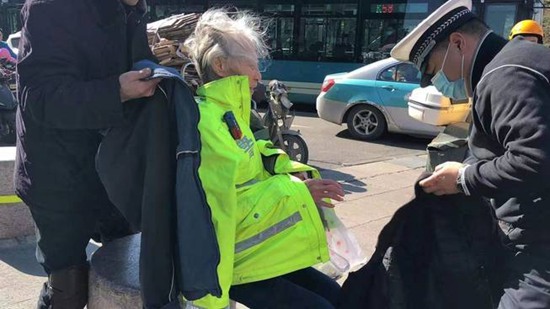 當(dāng)天濟(jì)南室外氣溫降到了零下4度,十一點(diǎn)半左右,在泉城路和趵突泉北路交叉口,有一位80多歲的老太太穿著薄衣站在寒風(fēng)中瑟瑟發(fā)抖。附近一名交警看到后,立刻上前脫下自己的衣服披在老人身上,并跪在地上為老人暖腳,這一幕感動(dòng)了在場(chǎng)所有的人。