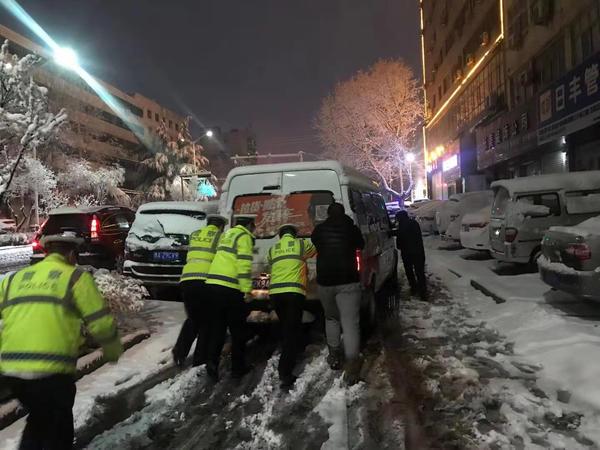 據(jù)統(tǒng)計(jì),大雪夜,新密交警共出動(dòng)警車30余輛,幫助群眾推車60余臺(tái)。