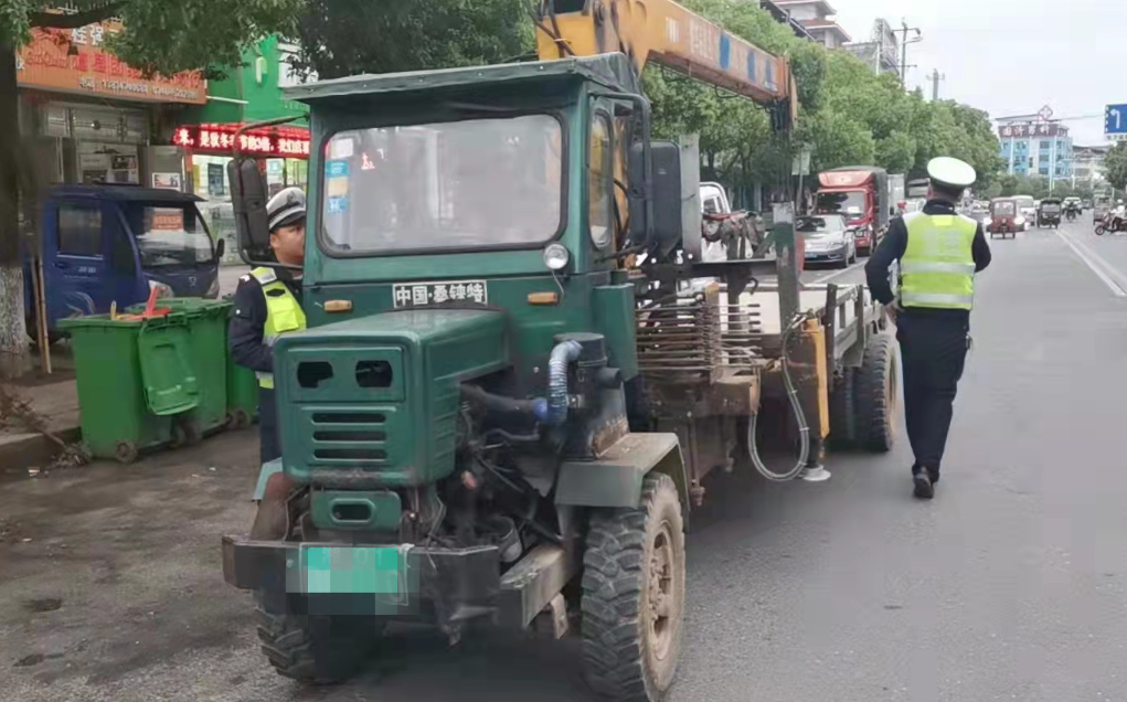 當(dāng)日傍晚,該大隊梅花中隊民警在道縣鴻達(dá)醫(yī)院路段執(zhí)勤時,發(fā)現(xiàn)前方駛來一輛湘01DXXXX農(nóng)用變型拖拉機,民警示意該車靠邊接受檢查。車停后,民警嚇了一大跳,只見該車尾部車廂被拆除了,加了一個吊車裝置。民警要求駕駛員出示證件,駕駛員稱駕駛證和行駛證都丟在家里忘記帶了,當(dāng)時因系統(tǒng)升級無法核實駕駛員的信息。駕駛?cè)烁嬖V民警:“自己家有一臺挖機,但請吊車花費太大不劃算,就買了一輛農(nóng)用拖拉機,私自改裝成吊車。”民警對駕駛?cè)诉M(jìn)行了嚴(yán)肅的批評教育,并對該車予以暫扣。(文/何斌 何湘榮)