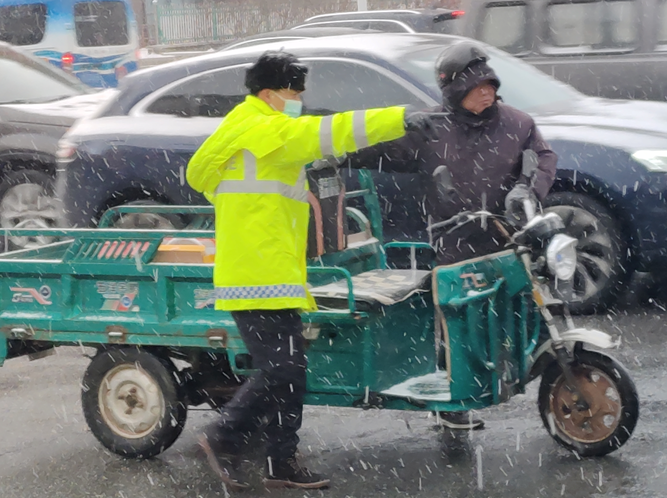 早晨6:50,大隊(duì)全體民警、輔警全部按時(shí)到崗到位,開(kāi)始疏導(dǎo)防滑和交通指揮工作。重點(diǎn)將警力安排在南迎祥路、通世路、紅旗中路、毓璜頂西路、文化路、青年南路等轄區(qū)內(nèi)幾個(gè)坡度較大、車(chē)流較多的路段,及時(shí)清理路面積雪,引導(dǎo)車(chē)輛安全有序通行。