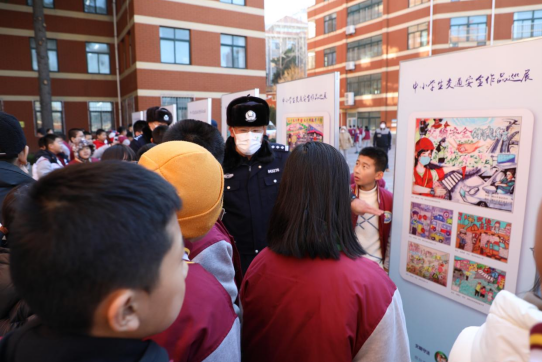 課后,民警組織學(xué)校師生參觀“文明守法,平安回家”主題海報(bào)展和“小手拉大手 文明交通伴我行”中小學(xué)生繪畫展,用孩子雙手繪制的作品引起更多孩子的心理共鳴,并現(xiàn)場(chǎng)發(fā)放印有122標(biāo)志的口罩,讓學(xué)生看到對(duì)方的臉,就能想到交通安全,加深宣傳教育的效果。