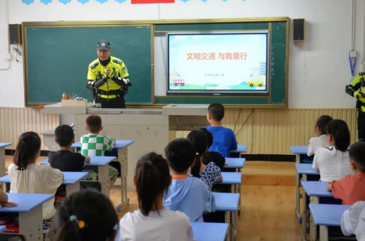 交通信號燈怎么看呢?騎車乘坐摩托車、電動自行車為什么一定要戴安全頭盔?課堂上宣講民警采取寓教于樂、互動問答的方法,用生動親切的語言為孩子們細致地講解信號燈、人行橫線等標志的作用和日常交通安全小知識。