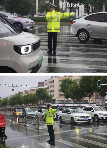 上班高峰期,交通壓力增加,給執(zhí)勤民輔警帶來(lái)嚴(yán)峻的考驗(yàn),執(zhí)勤民輔警冒雨堅(jiān)守在一線,認(rèn)真履行職責(zé),在雨中,執(zhí)勤民輔警全身被雨水浸透,采取固定執(zhí)勤和巡邏執(zhí)勤相結(jié)合的方式,加大路面巡查力度,在重點(diǎn)時(shí)段、重點(diǎn)路段增派警力,提高見(jiàn)警率、管事率,及時(shí)對(duì)過(guò)往車(chē)輛進(jìn)行分流和疏導(dǎo),在高峰時(shí)段確保人、車(chē)有序通行,不發(fā)生擁堵現(xiàn)象?吹浇痪谟曛袌(jiān)強(qiáng)的身影,深深感染著過(guò)往的群眾和司機(jī)朋友,大家在紛紛贊許的同時(shí),也更加理解交通安全的重要性,更加能自覺(jué)的遵守交規(guī),文明出行。全體執(zhí)勤民輔警在雨中發(fā)揚(yáng)不怕苦、不怕累的精神,有效保障了雨天道路交通安全暢通有序和群眾的出行安全。