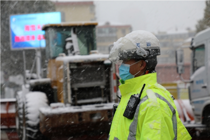早上6:30,全體民警輔警根據(jù)預(yù)案按時(shí)到崗到位,不畏嚴(yán)寒、風(fēng)雪無阻,堅(jiān)守崗位,保安全、護(hù)暢通。零下3度的天氣,市區(qū)各主要干道路口和醫(yī)院、學(xué)校周邊那些身穿 “熒光黃”的身影,在皚皚白雪的映襯下顯得格外的溫馨。寒風(fēng)中,他們堅(jiān)守崗位,忙碌在城區(qū)的各個(gè)路口,認(rèn)認(rèn)真真的做著每一個(gè)交通指揮動(dòng)作,及時(shí)轉(zhuǎn)移事故車輛恢復(fù)道路通行,讓所有車輛安全順暢到達(dá)目的地。